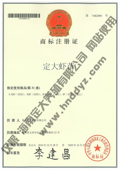 定大蝦苗商標(biāo)